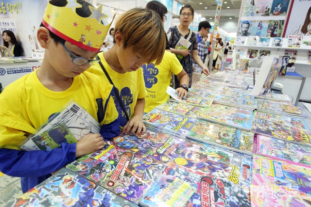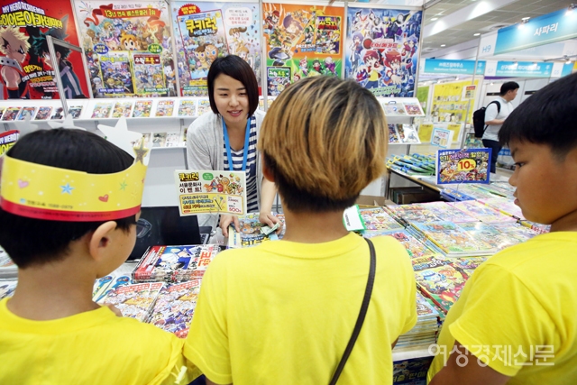 ‘우먼센스’ '아레나' 잡지와 만화 단행본 등으로 유명한 서울문화사 부스는 ‘터닝메카드 스티커 색칠놀이북’과 ‘인기 캐릭터 퍼즐’ 등을 구입하려는 어린이들로 오픈 직후 북적거렸다. 바로 옆에 진열된 ‘쿠키런’ ‘메이플스토리’ 등 만화책도 2시간 만에 동나버렸다. 서울문화사 관계자는 “부스를 개장하자마자 터닝메카드 관련 도서만 500여권이 팔려나갔다”고 분위기를 전했다.