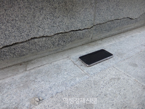 깊이를 봤을 때 대리석이라는 소재 특성상 균열이 상당 부분 진행됐다는 것을 의미한다. 10번 출구 앞 인도이기 때문이기 때문에 육안으로도 확인이 가능하다.