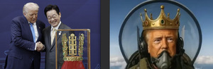 신성한 권위와 절대적 통치를 상징하는 금관을 '노킹스(No Kings)' 반트럼프 시위의 당사자인 도널드 트럼프 미국 대통령에게 선물한 이재명 대통령이 화제다. 29일 이 대통령은 국립경주박물관에서 열린 한미 정상회담에 앞서 트럼프 대통령에게 신라 천마총 금관을 본떠 특별 제작한 모형을 선물했다.김태진 외교부 의전장은 트럼프 대통령에게 "한반도를 통일한 고대 왕국 신라의 대표적 천마총 금관"이라며 "하늘의 권위와 지상의 통치를 연결하는 신성함, 지도자의 강력한 리더십과 권위를 상징한다"고 했다. 이런 가운데 AFP통신은 "트럼프 대