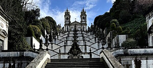 3월 12일, 포르투에서 근교로 가는 기차를 타고 1시간 10분 걸려 도착한 브라가(Braga)는 포르투갈 북부에 위치한 역사 깊고 아름다운 도시로, 포르투갈에서 세 번째로 오래된 도시이다. 브라가역에서 볼트 택시로 ‘봉 제수스 두 몬테’ 성당을 방문했다. 동백나무와 푸른 숲이 우거진 산속에 자리한 성당에는 호텔도 있었다. 봉 제주스 두 몬떼(Bom Jesus do Monte)는 브라가를 대표하는 상징적 유적지로 언덕 위에 위치한 바로크 양식의 성당과 아름다운 계단이 유명하다. 2019년에 유네스코 세계문화유산으로 등재되었다. Bo