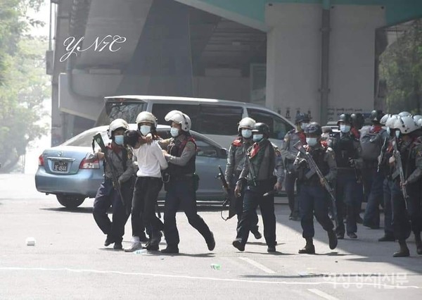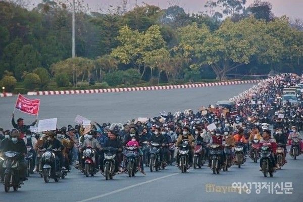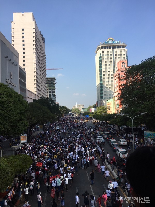 시위가 한 달이 넘으면서 대도시에서 소도시까지 전국으로 확산되고 있습니다. 양곤도 레단 센터, 술레 파야 등 주요 시위 장소에서 각 타운쉽에까지 시위가 번져서 통행하기가 쉽지 않습니다. 한국, 미국, 중국 대사관 등으로 가는 도로도 입구가 막혀 있습니다. 주요 다리도 마찬가지입니다. 저녁 8시부터 새벽 4시까지 통행금지도 계속되고 있습니다.