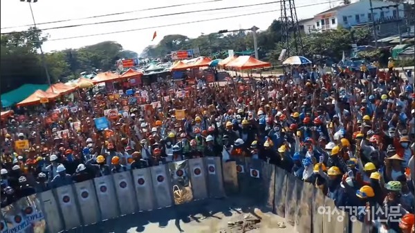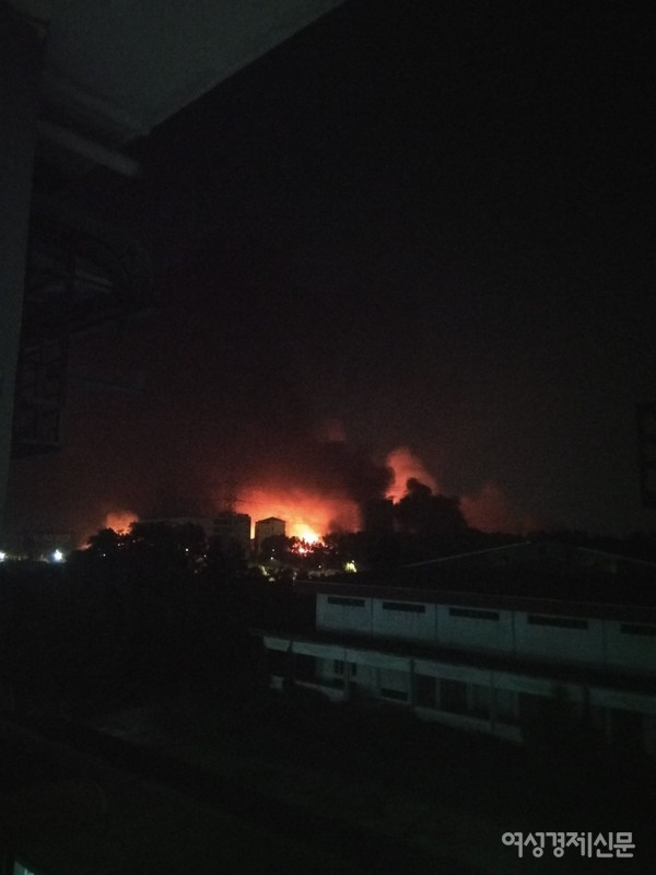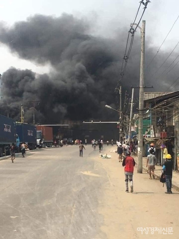 지난 14일 일요일. 양곤 훌라잉따야. 이날은 양곤 시민과 교민들이 숨죽이고 이 지역 소식을 들어야만 했습니다. 대형 화재와 충격적인 사망자 숫자. 훌라잉따야는 시내에서 강을 건너면 있는 산업단지 마을입니다. 수많은 노동자들이 새벽이면 봉제공장에 출근하기에 인산인해를 이룹니다. 이 지역에 끊임없이 연기가 나고 공장들이 불타고 있습니다. 하루종일 타는 연기와 불기둥은 도심에서도 볼 수 있었습니다. 중국계 공장 30여 곳이 방화로 화재가 난 것입니다. 이런 집단화재는 비상사태 중 처음 당하는 거라 양곤 교민들은 많이 놀랐습니다.