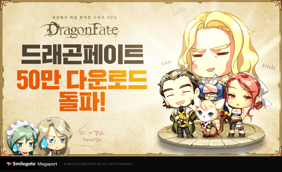 스마일게이트 메가포트(대표 권혁빈)는 모바일게임 '드래곤페이트'가 출시 4주 만에 50만 다운로드를 돌파했다고 20일 밝혔다.
