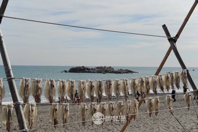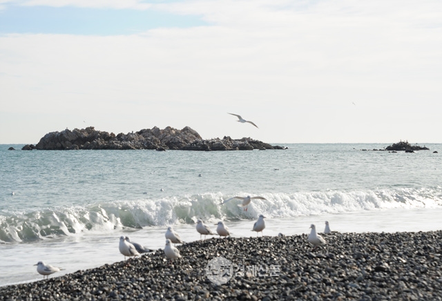 봉길해변의 갈매기들은 문무대왕의 호위무사다. 오징어 덕 사이로 문무대왕 수중릉이 들어있는 돌 섬이 보인다.