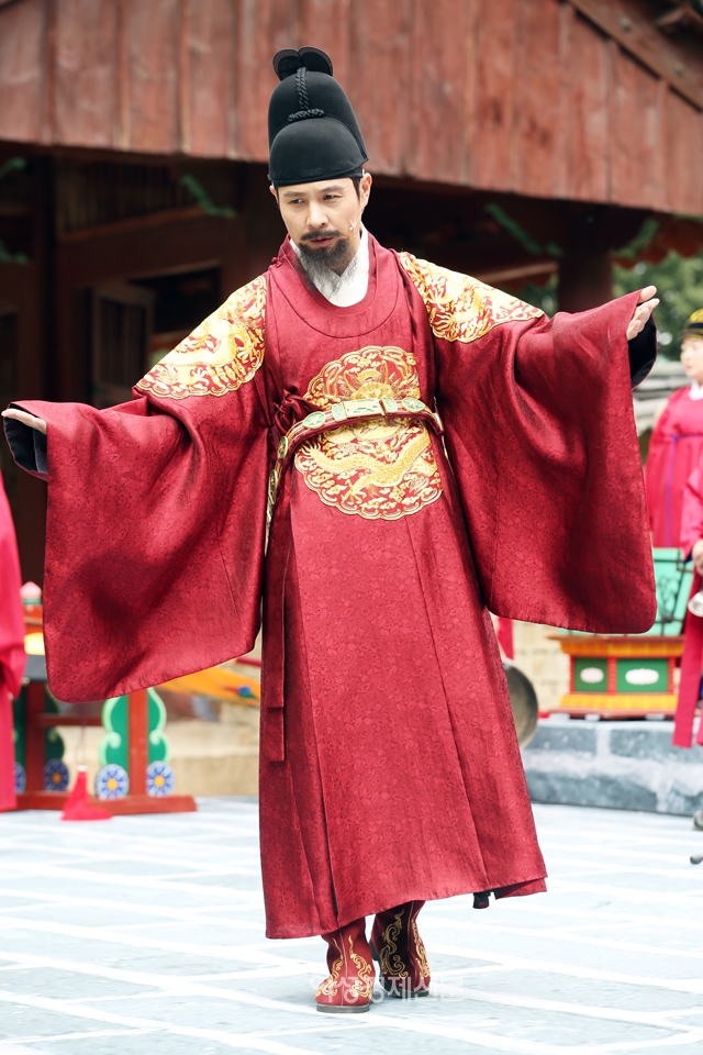 ▲ 배우 이민우가 26일 종묘 영녕전에서 '세종은 왜 종묘제례약을 만들었을까?' 공연을 펼치고 있다./photoyms@seoulmedia. co. kr26일 오전 서울 종로구 종묘 영녕전에서는 ‘고궁에서 우리음악 듣기’ 기자간담회가 열렸다. 이날 공연은 종묘제례악보존회에서 종묘제례악 정대업을 연주했다.