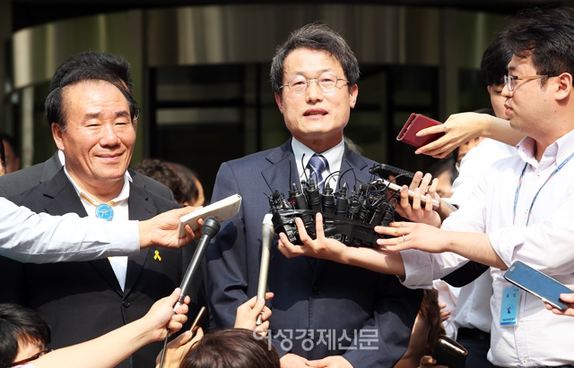 ▲ 지난해 6·4교육감 선거에서 상대 후보 고승덕 변호사의 미국 영주권 보유 의혹을 제기해 허위사실을 공표한 혐의로 재판 중에 있는 조희연 서울시 교육감이 4일 오후 선고 유예 판결을 받았다. /photoyms@seoulmedia. co. kr▲ 조희연 서울시 교육감이 4일 오후 선고 유예 판결을 받고 취재진의 질문에 답하는는 중에 잠시 미소를 띄였다. /photoyms@seoulmedia. co. kr