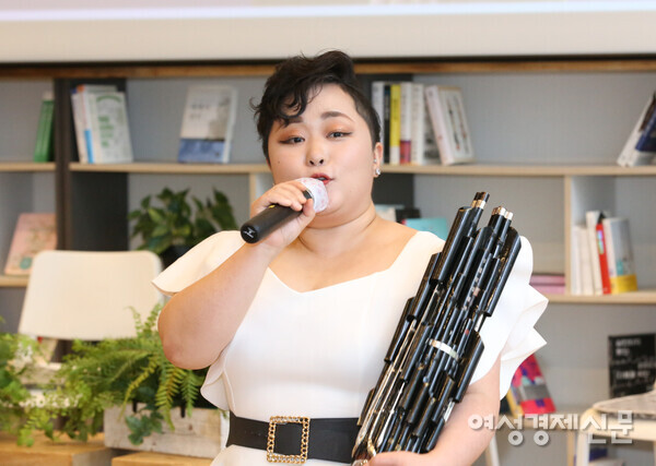 국악창작밴드 뮤르가 29일 2022 WE 포럼에서 축하공연을 하고 있다. /장세곤 기자 국악창작밴드 뮤르(허새롬·지혜리)가 29일 서울 중구 커뮤니티하우스 '마실'에서 여성경제신문과 국내 대표 여성지 우먼센스 공동 주최로 열린 '2022 WE포럼'에서 축하공연을 하고 있다.