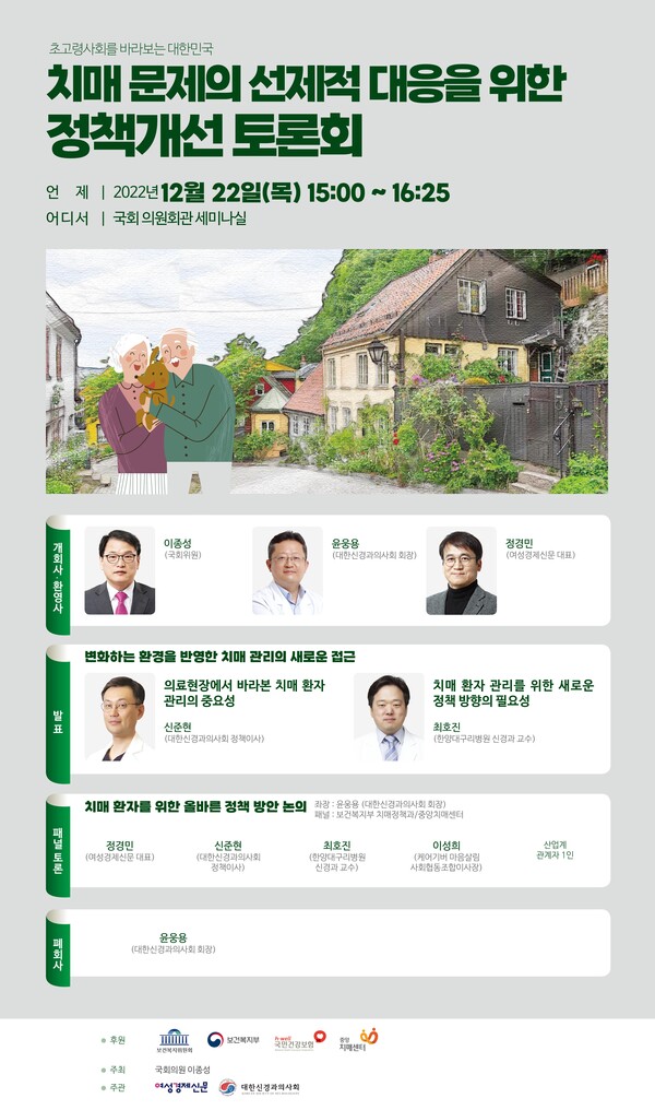 - 대한신경과의사회, 국회서 2022 치매정책토론회 개최