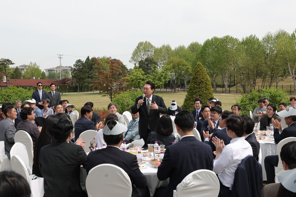 그런 윤 대통령이 지난 5월 2일 용산 어린이정원에서 대통령실 기자단과 깜짝 만남을 가졌다고 합니다. 대통령실 앞마당인 파인그라스에서 참모진과 기자들이 오찬을 하던 중 윤 대통령이 예고 없이 갑자기 등장했다는 것입니다. 취임 1주년을 기념하는 차원에서 대통령이 자처했다고 합니다. 이날 공개된 윤 대통령의 발언과 사진들을 보면 상당히 분위기가 훈훈했음을 알 수 있습니다.