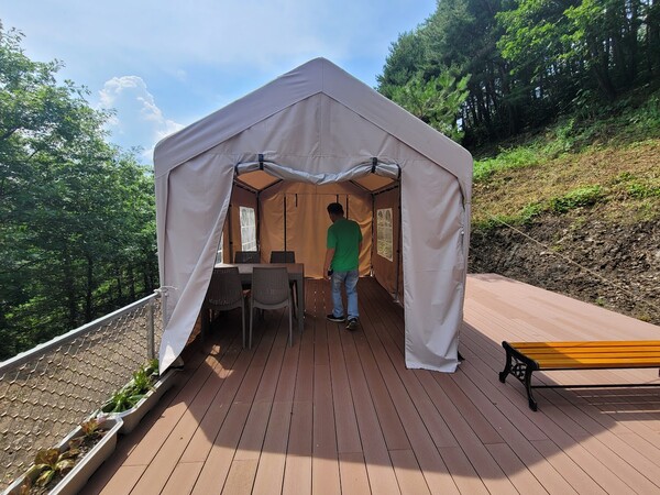 얼마 전 필자도 다른 방문객들과 함께 천지애 농원의 팜크닉을 체험해 보았다. 농장에는 제대로 된 팜크닉을 즐길 수 있도록 대형 텐트와 테이블을 들여놓고 마음껏 고기를 굽고 음식을 해 먹을 수 있도록 준비가 되어 있었다. 텐트 안에는 조리도구와 바비큐 시설이 있다. 심지어 전자레인지도 있다.