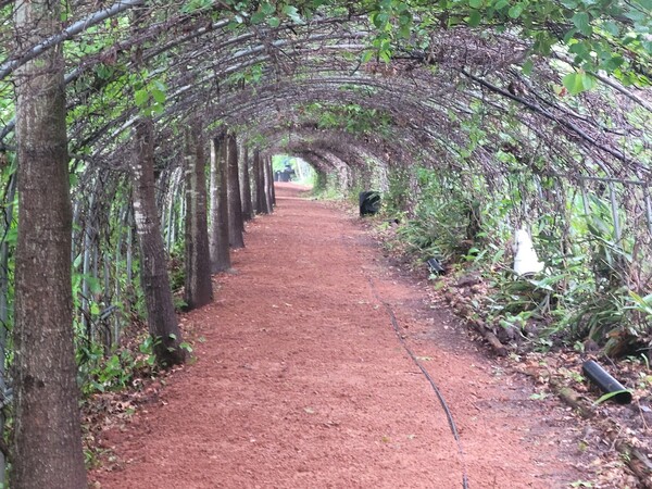 숲의 건강함을 한껏 느끼라고 황톳길을 만들었다. 맨발로 황토를 밟고 가니 발바닥이 자극되어 기분이 좋아졌다. 황톳길은 덩굴 터널 안에 만들어 놓아서 햇빛 걱정은 없었다. 8월 한여름에도 그늘 속에 있으니 시원했다. 역시 평창은 시원하다.