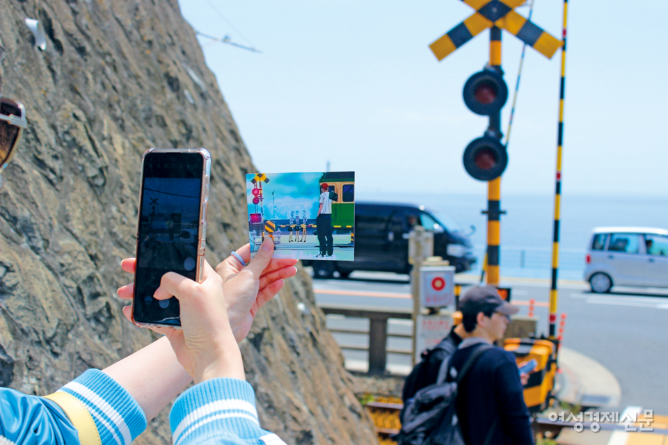 <슬램덩크>의 배경이 되었던 에노시마와 가마쿠라는 팬들 사이에서 일명 '성지순례' 코스로 꼽힌다. 애니메이션 판 오프닝에 등장한 가마쿠라코코마에역 앞의 건널목은 인산인해였다. 한국에서부터 엽서 등의 굿즈를 가져와 배경과 함께 사진을 찍는 관광객도 있었다. 바닷가를 거닐며 <슬램덩크>의 모습을 온몸으로 느끼는 여학생들의 모습도 보였다.
