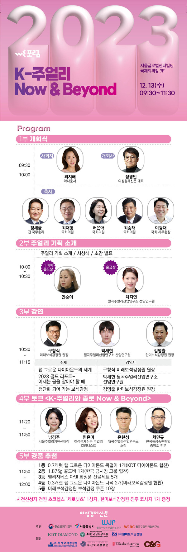 13일 여성경제신문이 서울글로벌센터빌딩 국제회의장에서 개최한 '2023 주얼리 페스타'에서는 소비자 입장에서 주얼리를 구매할 때 알아야 할 기본 지식 강연과 'K-주얼리와 종로 Now & Beyond'를 주제로 토크쇼가 펼쳐졌다.