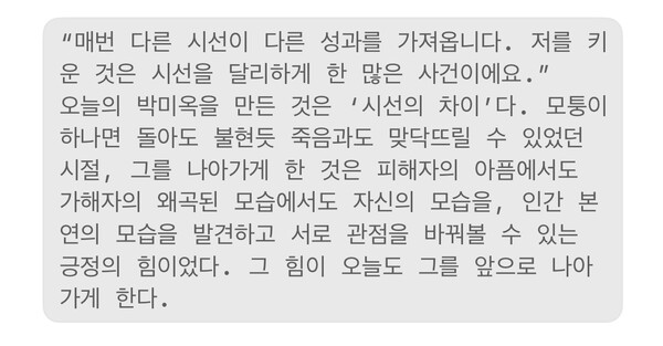 박미옥, 타인의 삶에서 자신을 발견하는 ‘시선’의 차이