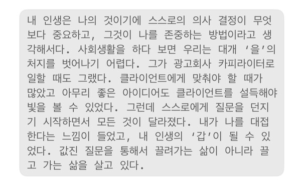 최인아, 사랑하는 이에게 묻듯 자신에게 ‘질문’하는 사람