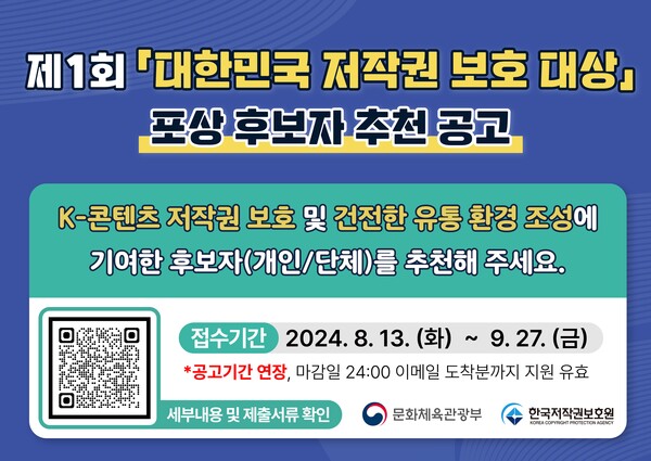 - [저작권 지킴이] '제1회 저작권 보호 대상' 후보자 추천 9·27까지 연장