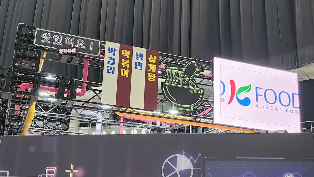 오픈키친에는 한강 편의점에서 쉽게 찾아볼 수 있는 즉석 라면 조리기 4대를 배치했다. 일본 현지에서 판매되고 있는 삼양라면, 까르보불닭볶음면과 오뚜기 순후추 라면 사골곰탕맛 등 원하는 봉지라면을 골라 직접 끓여먹을 수 있게 했다. 한복을 대여해 한옥마을 이미지를 배경으로 기념사진을 찍을 수 있는 ‘한복사진관’과 K-팝 아이돌들의 촬영 명소로 알려진 ‘인기가요 계단’을 재현한 특설 포토존에도 촬영 행렬이 줄을 이었다. 일본 식료품 기업 아지노모토의 간편식 조미료 브랜드 쿡두 부스에서는 한국 인기 메뉴인 닭갈비, 잡채 등을 맛볼 수 있도록 즉석에서 조리해 선보였다.