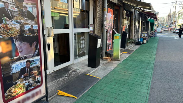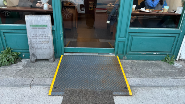 이 밖에도 사람들이 많이 몰리는 소위 '핫플레이스' 카페·즉석사진관·소품샵의 경우 경사로가 설치돼있지 않고 큰 문턱이 자리해 이동 약자의 접근을 막는 상황이었다.