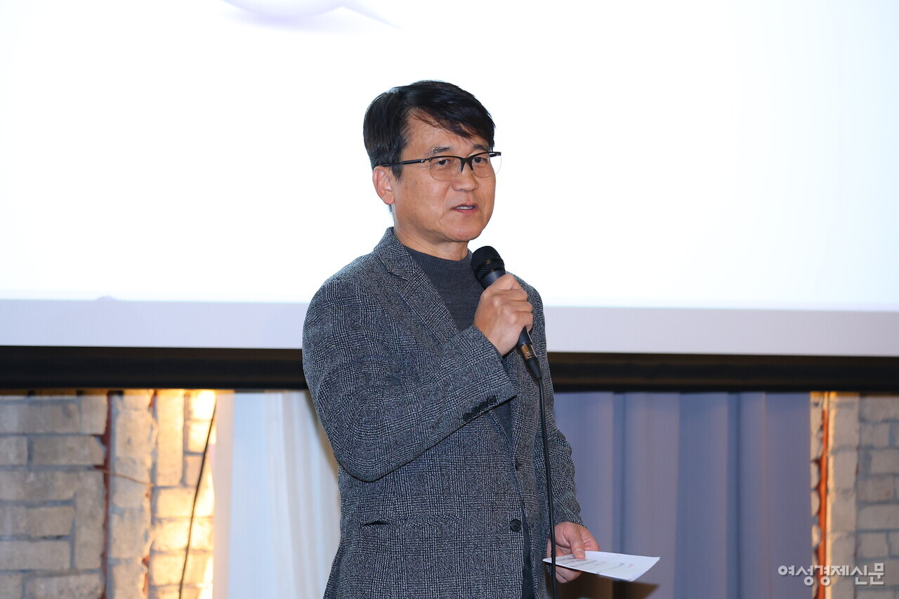 정경민 여성경제신문 대표이사가 '2024 주얼리 페스타' 개회사를 말하고 있다. /류빈 기자