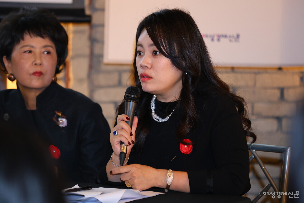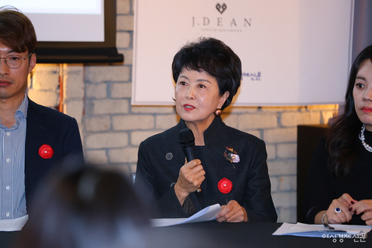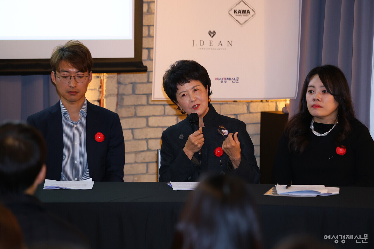 우하나 한국귀금속보석디자인협회 회장이 K-주얼리의 세계화 방안에 대해 얘기하고 있다. /류빈 기자
