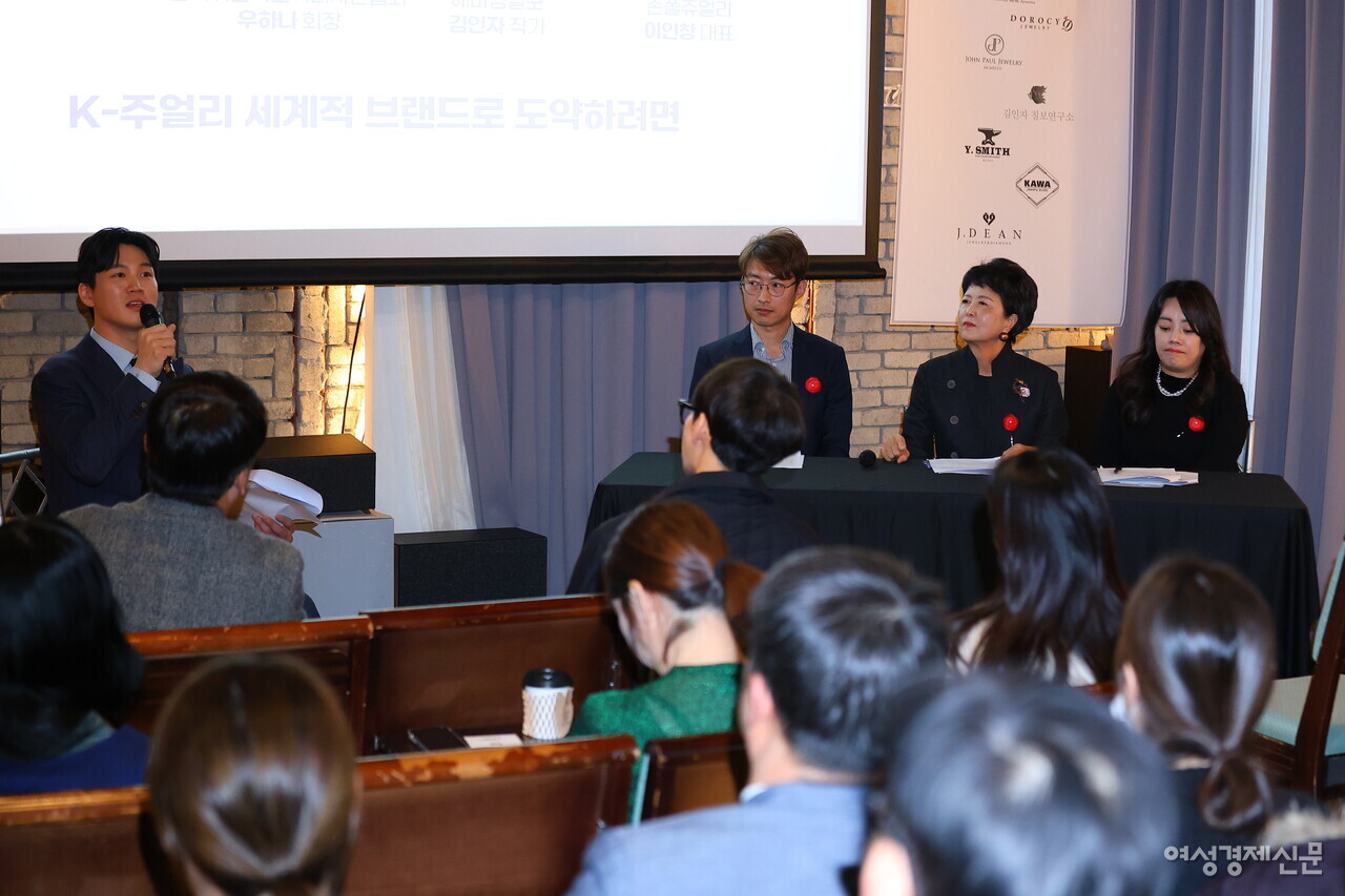 김인자 에마임칠보 작가가 K-주얼리가 글로벌 시장에서 경쟁력을 갖추기 위해 필요한 디자인 요소에 대해 얘기하고 있다. /류빈 기자