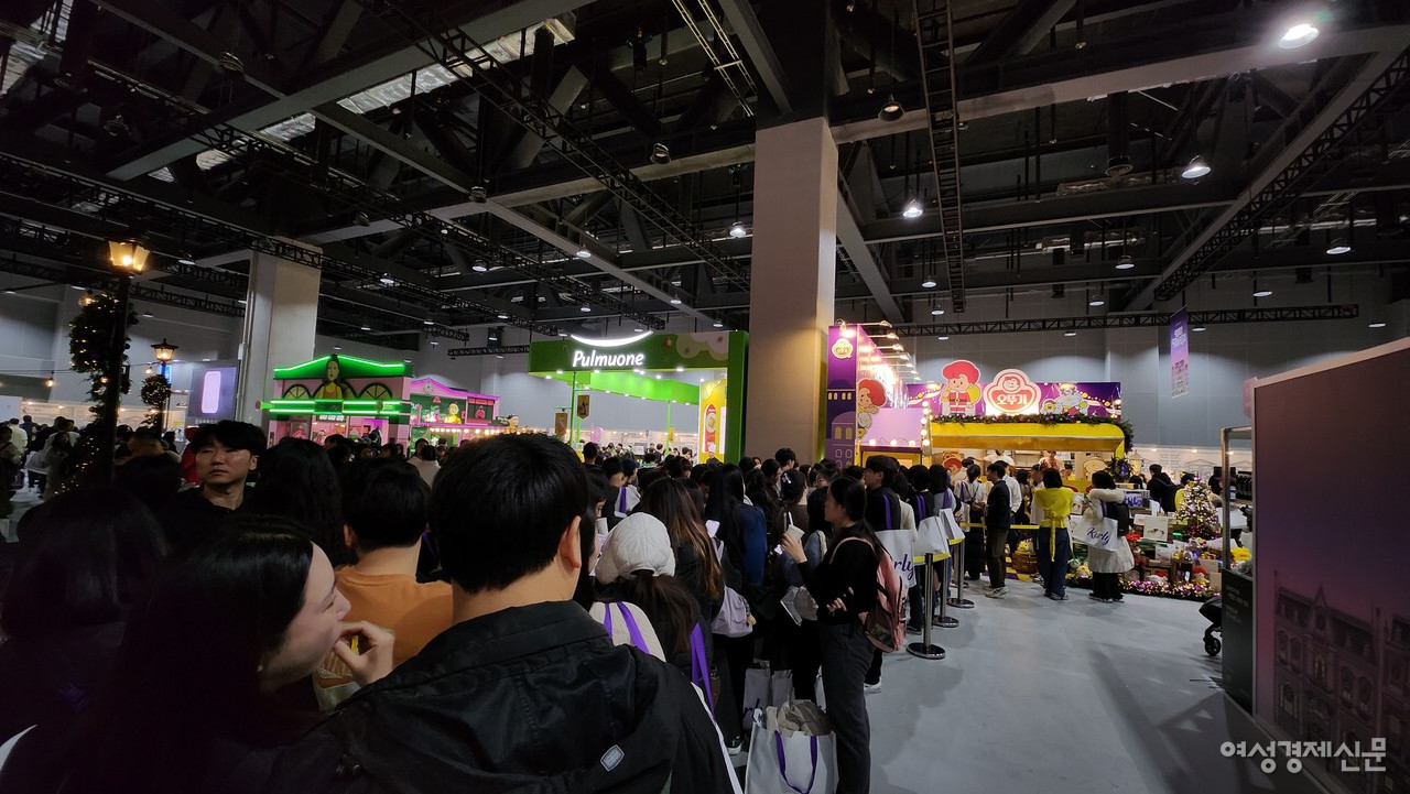 19일 오전 11시 서울 강서구 코엑스 마곡 르웨스트에서 개막한 '컬리 푸드 페스타' 현장에는 컬리의 오프라인 미식 축제를 체험하기 위해 몰려든 관람객들로 오픈 전부터 북적였다. 오픈한 지 2시간이 지난 오후 1시가 될 때까지도 건물 밖까지 이어진 입장 줄에 발 디딜 틈이 없었다. 에스컬레이터도 줄을 서서 이용해야 할 정도였다.