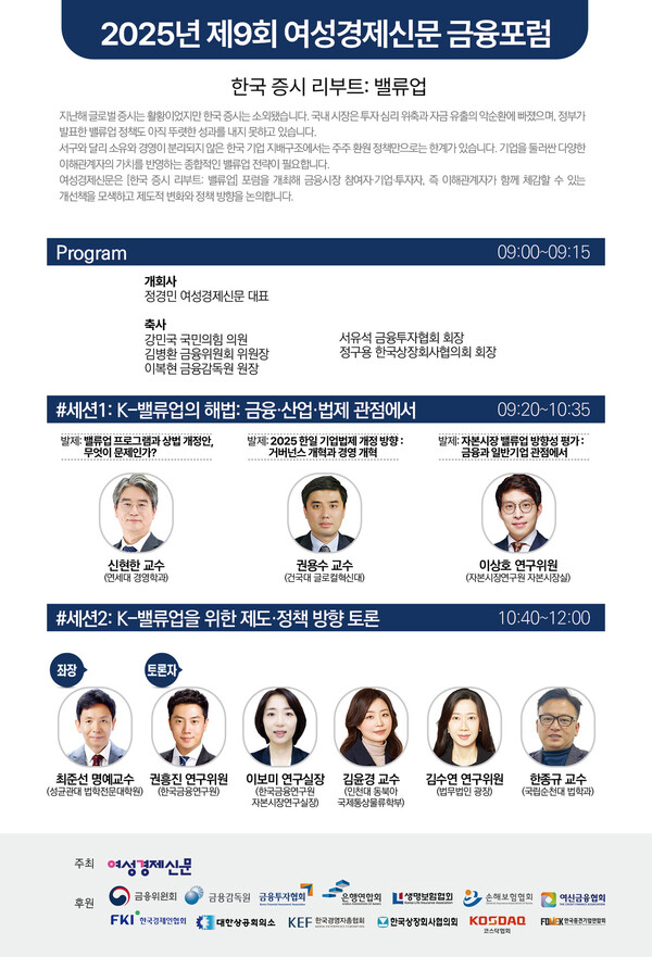 - 'K-밸류업' 한국 증시 미래 바꿀 해법···제9회 여성경제신문 금융포럼 개최