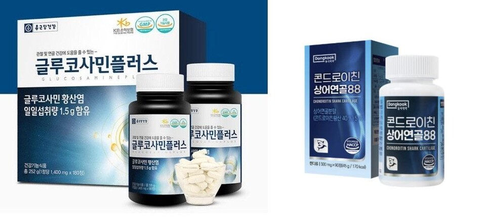 28일 여성경제신문 취재를 종합하면 먼저 관절 건강을 위해 글루코사민과 콘드로이틴 복합제 섭취가 권장된다. 두 성분은 연골의 주요 구성 물질로 관절염 증상 완화에 도움이 될 수 있다. 미국 국립보건원(NIH)은 글루코사민·콘드로이틴 복합 섭취가 무릎 관절염 환자의 통증 감소에 긍정적인 영향을 미친다고 보고했다. 관련 제품으로는 종근당의 '종근당 글루코사민플러', 동국제약의 '콘드로이친상어연골88' 등이 있다.