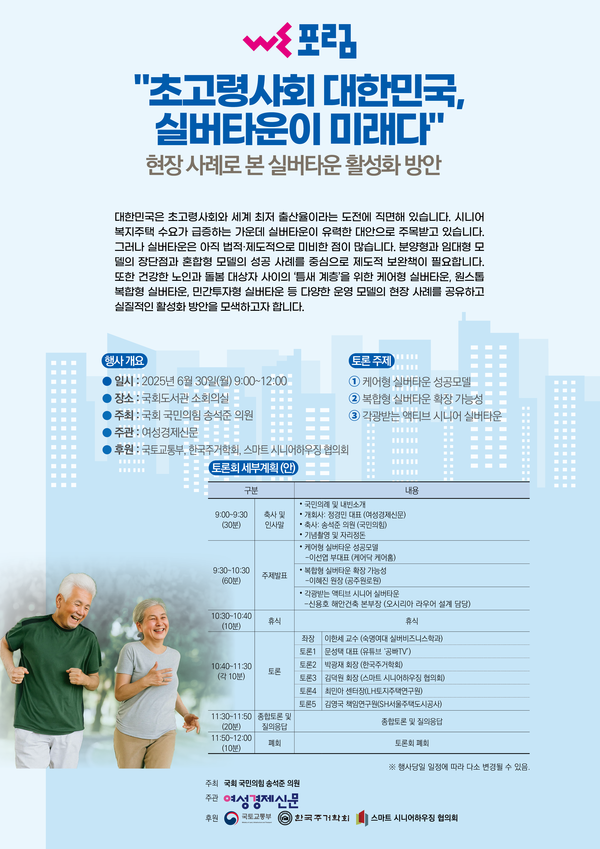 이러한 케어형 실버타운 운영 모델은 오는 30일 국회도서관에서 열리는 정책 토론회에서 구체 사례로 소개된다. 여성경제신문 주관으로 열리는 이번 토론회에서는 실버타운-재가복지센터-요양원의 연계 구조, 액티브 시니어 중심 설계 사례, 케어형 실버타운 성공 사례 등을 중심으로 논의가 이뤄진다. 특히 중간 단계 고령자에게 적합한 운영 사례로 ‘케어닥 케어홈’의 데이케어센터 연계형 실버타운 모델이 발표될 예정이다.