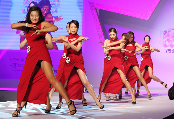 8일 오후 그랜드하얏트서울 호텔 그랜드볼룸에서 '2014 제3회 K-QUEEN 콘테스트'가 열린 가운데 참가자들이 그동안 갈고 닦은 댄스 실력을 뽐내고 있다. 이날 대상에는 주부 한희주 씨, 최우수상 김경주 씨, 우수상 박선영 씨가 수상의 영예를 안았다. / 박철중 기자 isletguy@naver.com