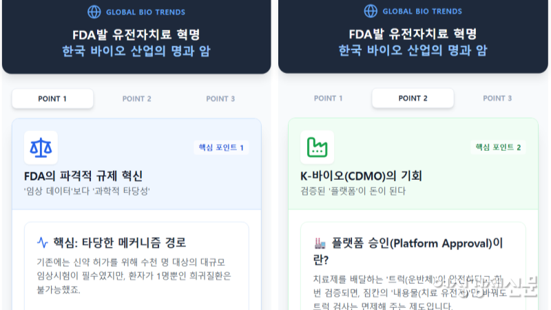 이승규 한국바이오협회 부회장은 여성경제신문과 통화에서 “FDA가 소수 환자 자료와 생물학적 근거만으로도 허가 심사를 허용한 것은 CGT 분야의 규제 허들을 낮춘 조치”라며 “이 조치로 CGT 기술 개발이 빨라지고 이를 제조·개발할 수 있는 CDMO 기업에 새로운 사업 기회가 열릴 것”이라고 말했다.