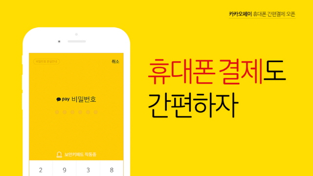 카카오페이 휴대폰 간편결제는 최초 1회 인증 후 비밀번호만 입력해 이용할 수 있어 결제 시마다 인증 절차가 필요한 기존 휴대폰 결제 서비스 대비 대폭 향상된 편의성을 지녔다.