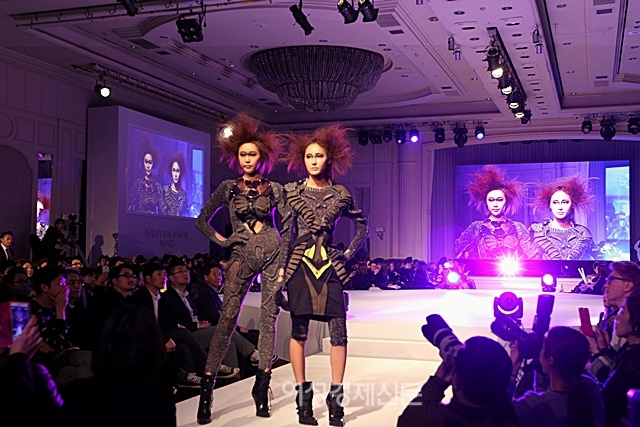 ▲ 17일 시세이도 프로페셔널 제3회 뷰티 이노베이터 어워드에서 파격적인 헤어스타일의 모델들이 각기 다른 개성을 뽐내고 있다. /이유진 기자 as99121@seoulmedia.co.kr▲ 시세이도 수석 헤어&메이크업 아티스트 '타다시 하라다' 특별무대에 오른 모델 두 명이 포즈를 취하고 있다. /이유진 기자 as99121@seoulmedia.co.kr▲ 17일 시세이도 프로페셔널, 제3회 뷰티 이노베이터 어워드가 역삼동 리츠칼튼 호텔에서 열렸다. 디자이너 김성환과 모델이 피날레 무대에서 워킹을 하고 있다. /이유진 기자 as99121@seoulmedia.co.kr