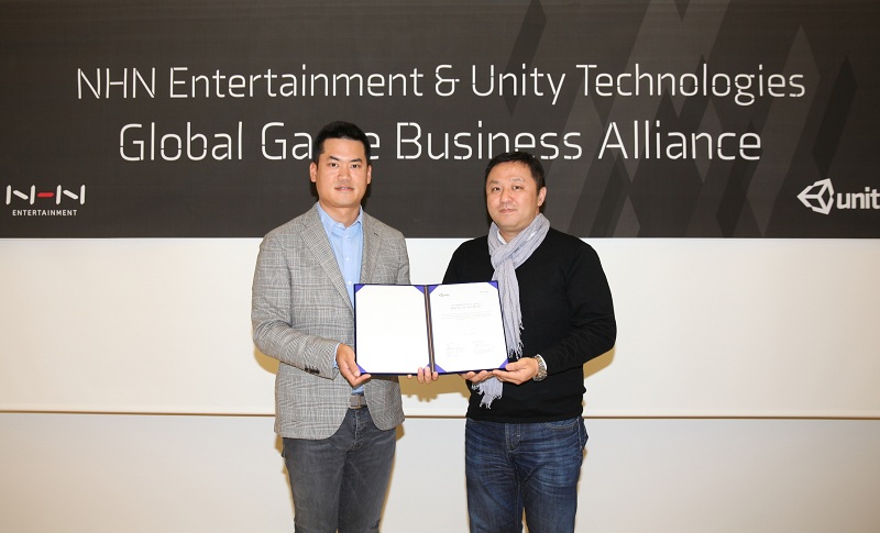 NHN엔터테인먼트(대표 정우진)와 유니티 코리아(대표 양우형)는 29일 성남시 분당구에 위치한 NHN엔터테인먼트 플레이뮤지엄 본사에서 글로벌 게임 시장에서의 경쟁력 확대를 위한 전략적 업무 제휴를 체결했다.