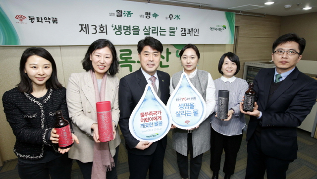동화약품은 지난 26일 초록우산어린이재단(회장 이제훈) 본사에서 ‘생명을 살리는 물’ 캠페인으로 활명수 118주년 한정판의 판매수익금 전달식을 가졌다고 2일 밝혔다.