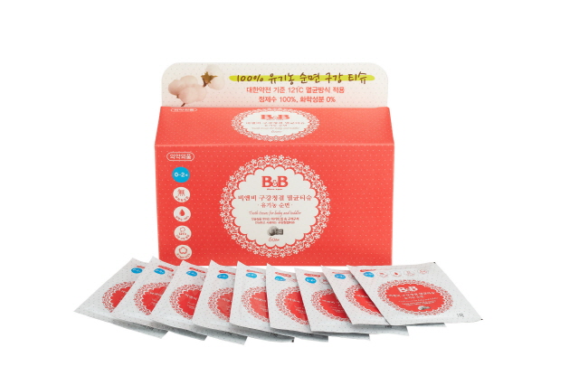 이번에 새롭게 출시된 비앤비 ‘구강청결 멸균티슈’는 0~2세 유아를 위한 제품으로, 기존 비앤비 구강청결티슈에서 한 단계 업그레이드된 100% 유기농 순면 구강티슈이다.