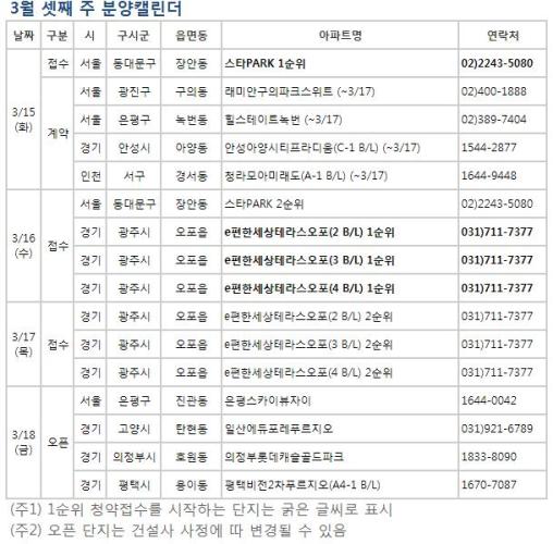 14일 부동산114와 부동산써브 등에 따르면 이번 주 예정된 분양 관련 일정은 아홉 곳에서 청약을 접수하고 견본주택 13곳이 문을 여는 등 전국에서 3216가구가 공급된다.