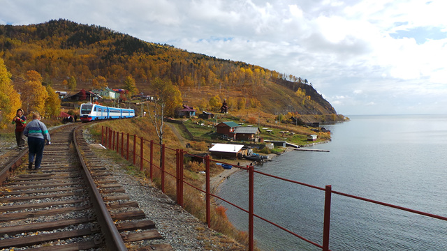 '환바이칼 관광열차'는 바이칼 호수를 한바퀴 도는 열차가 아니다. 이름만 들어서는 그렇게 착각하기 쉽다. 호수 서쪽 일부 구간을 운행하는 관광열차인데 원래는 시베리아 횡단 철도의 한 구간이었다. 1950년대에 바이칼 호수의 물이 북극해로 빠지는 앙가라강에 수력발전용 댐을 건설하면서 이르쿠츠크에서 바이칼역에 이르는 철로가 물에 잠기게 되었다. 그래서 횡단철도의 노선이 바뀌었다. 그 때문에 잠기지 않은 서쪽 구간은 자연 폐선로가 되었는데 바이칼 호수변을 지나면서 보는 주변풍광이 워낙 아름다워 찾아오는 사람들이 늘어나면서 관광열차가 운행되기 시작했다.