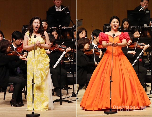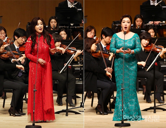 ▲ 26일 오후 서울 종로구 세종문화회관 대극장에서 열린 제22회 서울 신춘가곡제 '신춘가곡의 향연'에서 소프라노 임청화(왼쪽)와 소프라노 고진영이 열창하고 있다. /문인영 기자 photoiym@seoulmedia.co.kr ▲ 26일 오후 서울 종로구 세종문화회관 대극장에서 열린 제22회 서울 신춘가곡제 '신춘가곡의 향연'에서 소프라노 이미경(왼쪽)과 메조소프라노 추희명이 열창하고 있다. /문인영 기자 photoiym@seoulmedia.co.kr ▲ 26일 오후 서울 종로구 세종문화회관 대극장에서 열린 제22회 서울 신춘가곡제 '신춘가곡의 향연'에서 소프라노 김지현(왼쪽)과 소프라노 강혜정이 열창하고 있다. /문인영 기자 photoiym@seoulmedia.co.kr ▲ 26일 오후 서울 종로구 세종문화회관 대극장에서 열린 제22회 서울 신춘가곡제 '신춘가곡의 향연'에서 소프라노 박문주(왼쪽)와 소프라노 임청화가 열창하고 있다. /문인영 기자 photoiym@seoulmedia.co.kr