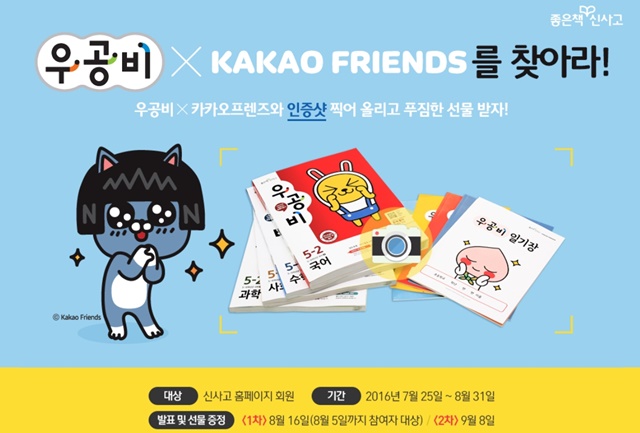 교육 출판 전문 기업 좋은책신사고가 초등 우공비ⅹ카카오프렌즈 인증샷 이벤트를 8월 31일까지 실시한다.