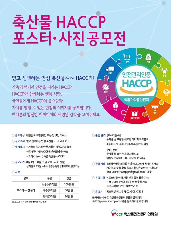 축산물안전관리인증원은 오는 8월 31일까지 '축산물HACCP 포스터․사진 공모전'을 진행한다.