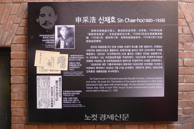 ▲ 여순 감옥 복도 벽면에 신채호 선생의 순국에 관한 내용이 붙어있다. (사진제공=세종경제신문)