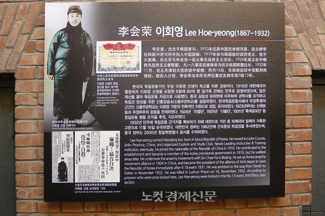 “한국의 독립운동가인 우당 이회영 선생이 옥고를 치른 방이다. 1910년 대한 제국이 멸망하자 이회영 선생을 포함한 6형제 60여 명 일가족 전체는 만주로 망명하였으며, 많은 재산을 팔아 독립운동 자금으로 사용했다. 중국 길림성 유하현에 이주하여 경학사를 조직하고 독립군 양성을 위한 신흥강습소(신흥무관학교)를 설립하였다.
