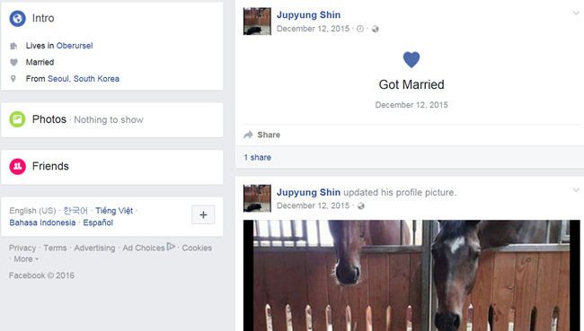 현재 그의 페이스북 계정은 여전히 살아있지만 친구나 사진 등 자료는 거의 삭제된 상태다.