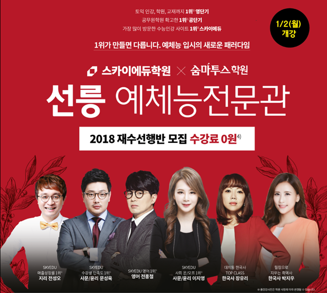 대학입시 전문 브랜드 스카이에듀가 내년 1월 2일 서울 대치동에 예체능 계열을 준비하는 수험생들을 위한 입시학원인 '숨마투스학원 선릉 예체능전문관'을 개관한다.