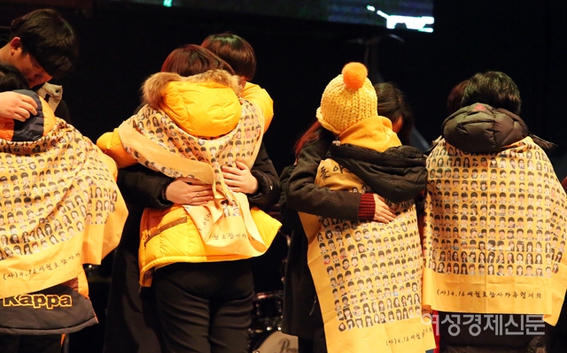 ▲ 7일 오후 서울 광화문 광장에서 열린 박근혜정권퇴진비상국민행동 '세월호 참사 1000일 11차 범국민행동의날-박근혜는 내려오고 세월호는 올라오라!'에서 세월호 참사 생존 단원고 학생들이 발언을 마치자 유가족들이 학생들을 포옹하고 있다. /양문숙 기자 photoyms@seoulmedia.co.kr