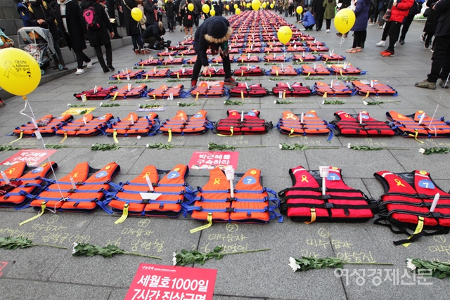 ▲ 세월호 참사 1000일을 이틀 앞둔 7일 오후 서울 중구 광화문광장에서 11차 촛불집회가 열린 가운데 세월호 참사 희생자 304명을 의미하는 304개의 구명조끼가 놓여 있다. /양문숙 기자 photoyms@seoulmedia.co.kr▲ 세월호 참사 1000일을 이틀 앞둔 7일 오후 서울 중구 광화문광장에서 11차 촛불집회가 열린 가운데 세월호 참사 희생자 304명을 의미하는 304개의 구명조끼가 놓여 있다. /양문숙 기자 photoyms@seoulmedia.co.kr▲ 세월호 참사 1000일을 이틀 앞둔 7일 오후 서울 중구 광화문광장에서 11차 촛불집회가 열린 가운데 세월호 참사 희생자 304명을 의미하는 304개의 구명조끼가 놓여 있다. /양문숙 기자 photoyms@seoulmedia.co.kr▲ 세월호 참사 1000일을 이틀 앞둔 7일 오후 서울 중구 광화문광장에서 11차 촛불집회가 열린 가운데 세월호 참사 희생자 304명을 의미하는 304개의 구명조끼가 놓여 있다. /양문숙 기자 photoyms@seoulmedia.co.kr▲ 세월호 참사 1000일을 이틀 앞둔 7일 오후 서울 중구 광화문광장에서 11차 촛불집회가 열린 가운데 세월호 참사 희생자 304명을 의미하는 304개의 구명조끼가 놓여 있다. /양문숙 기자 photoyms@seoulmedia.co.kr SCRAP SHARE 관련기사 "친구들아 다시 만날땐 열여덟살 그 모습을 기억해줘" 광화문 촛불 모두 울었다 양문숙 기자 yms7890@hanmail.net 다른기사 보기 저작권자 © 여성경제신문 무단전재 및 재배포 금지 당신만 안 본 뉴스 건보공단, 배상책임보험 트집 잡다 '역풍'···환수금 대신 망신살 챙겼다 56조 화이자 '승자의 저주'···ADC 2년 '옥석', 리가켐바이오 '순항' 박헌정 더봄 올가을 단풍은 대체 언제 드는 거야? 홍미옥 더봄 요즘 핫해!···달콤함의 최강자 무화과의 매력 김성재 칼럼 마이클 버리의 'AI 거품설' 타당한가 기자수첩 론스타 사건, '시작은 DJ, 끝은 한동훈'이란 유치한 서사 '기대감' 끝났다···3분기 제약·바이오社 성과 '피라미드' 건보공단, 배상책임보험 트집 잡다 '역풍'···환수금 대신 망신살 챙겼다 개의 댓글 회원로그인 작성자 비밀번호 댓글 내용입력 댓글 정렬 BEST댓글 BEST 댓글 답글과 추천수를 합산하여 자동으로 노출됩니다. 닫기 더보기 댓글삭제 삭제한 댓글은 다시 복구할 수 없습니다. 그래도 삭제하시겠습니까? 비밀번호 닫기 댓글수정 댓글 수정은 작성 후 1분내에만 가능합니다. 본문 / 400 비밀번호 닫기 내 댓글 모음 닫기 주요기사 최초 '유엔 여성 사무총장' 나오나···차기 후보 권장 명시 GC녹십자, 'mRNA-LNP 플랫폼' 성과 발표···"혁신 치료제 개발 지속" KB금융, 데이터·AI 전략 총점검···양종희 "체감할 수 있는 혁신해야" 비만약 ‘위고비’도 못 넘은 벽···알츠하이머 임상 줄줄이 ‘좌절’ "누가 발행?" 답 없고 "준비금은?" 말 없는 하나금융 스테이블코인 전략 "죽고 다치는 급식노동자 많아"···국회 앞 '법 개선 촉구' 집회