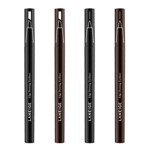 라네즈의 '엣지 드로잉 아이라이너(0.5ml/1만 8000원대)'는 초보자도 쉽고 빠르게 그릴 수 있는 아이라이너로 휘어짐이나 붓 갈라짐이 없어 한번에 최적량의 내용물이 도포되는 것이 장점이다. 탄력 있고 안정감 있는 펠트 팁으로 정교한 아이라인을 연출 할 수 있으며, 피팅 폴리머가 함유돼 그리는 순간 건조되고 밀림과 번짐 없이 밀착된다. 홑꺼풀 눈에 적합한 사선형의 '샤피 팁'과 쌍커풀 눈에 적합한 '펜 팁' 등 사용자의 눈매에 꼭 맞는 라인을 그릴 수 있는 선택형 어플리케이터로 구성돼 있다.