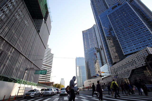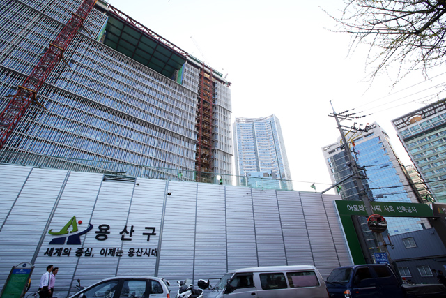 17일 용산역 앞 한강대로변은 고층 빌딩 공사가 마치 속도 경쟁을 벌이는 듯 했다.