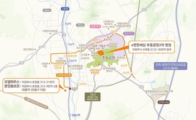 e편한세상 추동공원2차가 위치한 의정부는 굵직한 개발 호재로 주목 받고 있다. 먼저 서울 강남권과 연결되는 지하철 7호선 연장선 추진에 따른 수혜가 기대된다. 서울 도봉산에서 의정부를 거쳐 양주 옥정지구를 연결하는 7호선 연장선이 정부의 예비 타당성 조사를 통과해 순조롭게 진행 중이다. 여기에 구리~포천간 민자고속도로도 2017년 개통을 앞두고 있다.